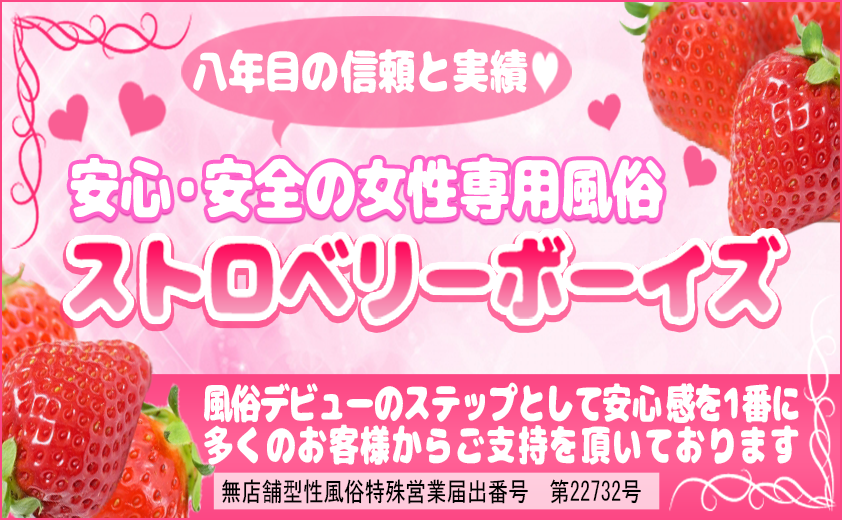 名古屋の女性用風俗【ストロベリーボーイズ名古屋】のトップページ。独自の審査を通過後、研修を受けた20代~50代までのセラピストが在籍しています。
