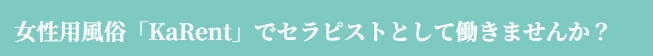 | 応募資格 | KaRentでは、20歳~49歳の方で、お店のコンセプトに共感し、以下の条件を備えた方を募集しています。 誠実さ 清潔感 コミュニケーション能力 女性を理解する努力を続けられる方 性に真剣に向き合える方 働く目的をしっかりと持っている方は大歓迎です。 |